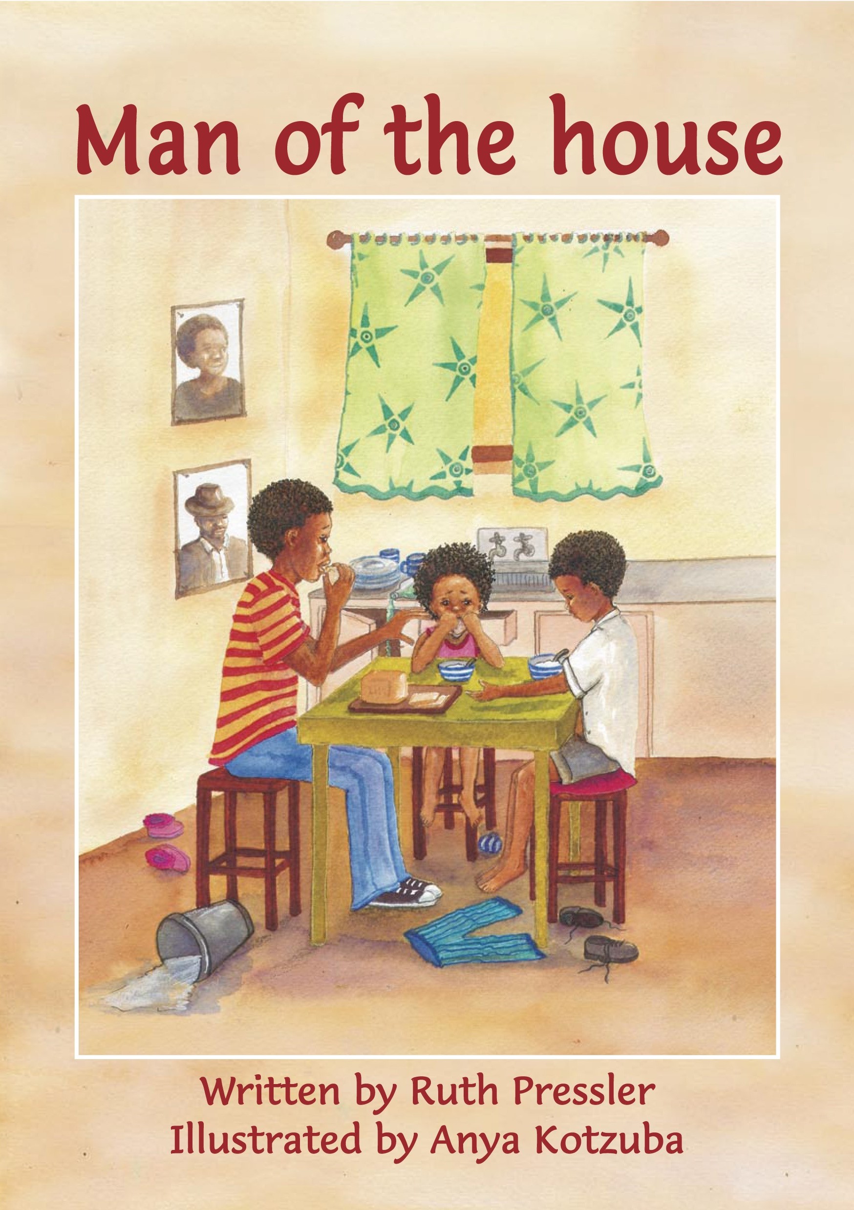 Man of the houseThe Sithole family moved from the Transkei to Soshanguve when Thando's father got a job at a big factory. For a while, things were better for the family. Then his father died and his mother got sick. Thando's mother made him promise that he would look after his eight year old brother, Siswe, and his four year old sister, Neo and make sure that they all stayed together. Thando hoped to go to university one day, but he had to stop going to school to try to get money to put food on the table. Still the children often went hungry. Thando could not ask for help because of the promise he made to his mother. Then Siswe's teacher, Mrs Gumede, decided to investigate.