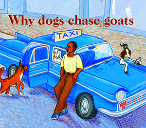 Why dogs chase goatsA dog, a goat, a sheep and a taxi driver go on an interesting journey. The goat tricks the dog, the dog chases the goat and the sheep is still standing in the road.