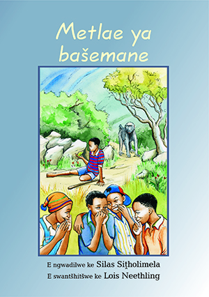 Metlae ya bašemaneLesiba o be a golofetše, fela a rata go etela rakgadiage GaMaja, le go bala thabeng le bašemane ba bangwe ba go diša mo motseng. Bašemane bao ba go seleka ga se ba mo tsebiše ka Maribe, tšhwene ye kotsi yeo e bego e dula kgauswi le motse. Lesiba was crippled, but he enjoyed visiting his aunt at GaMaja and playing on the mountain near the village with the herd boys. The mischievous boys did not tell him about Maribe, the dangerous baboon who lived near by!